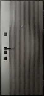 Квартирная входная дверь с панелями МДФ с покрытием серой эмалью — идеальное решение для тех, кто хочет подчеркнуть статус и вкус. Панели из МДФ легко очищаются, не требуют сложного ухода и сохраняют презентабельный вид на протяжении многих лет. Служат выразительным элементом композиции входа. Отделка подойдет для частных домов с кирпичной и деревянной облицовкой.