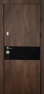 Металлическая дверь с коричневыми панелями МДФ и черной вставкой RAL КД-1326