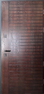 Стальная квартирная дверь со шпонированными панелями МДФ — выбор тех, кто ищет надёжную и эстетичную входную дверь. Панели из МДФ имеют высокую устойчивость к износу и деформации. Подходят для проектов с индивидуальной архитектурной концепцией. Оформление легко впишется в любой интерьер, а цветовая гамма подчеркнёт стиль помещения.