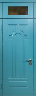 Уличная входная термодверь со стеклом во фрамуге и панелями МДФ RAL бирюзового цвета — станет акцентом, который преобразит фасад. Панели из МДФ легко очищаются, не требуют сложного ухода и сохраняют презентабельный вид на протяжении многих лет. Подчёркивают структуру и ритм архитектурных линий. Дизайн делает модель универсальной для любого интерьера.