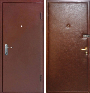 Металлическая порошковая дверь с реечным оформлением и длинной ручкой-скобой