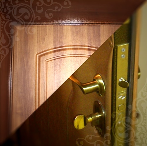 Необходимость обшить дверь ламинатом своими руками или оформить стальное полотно винилискожей может возникнуть по нескольким причинам. Одна из наиболее распространенных – сократить теплопотери в доме. Входные двери в квартиру такой отделкой обеспечивают дополнительную тепло- и шумоизоляцию в помещении.
